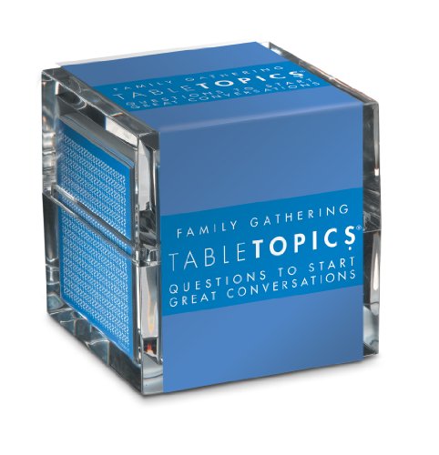 Build a bridge across generations with memorable conversation starters that are perfect for any family gathering More than just a family question game TableTopics Family Gathering Edition will help you start a new tradition around the extended family table and give young and old alike a chance t Read More..