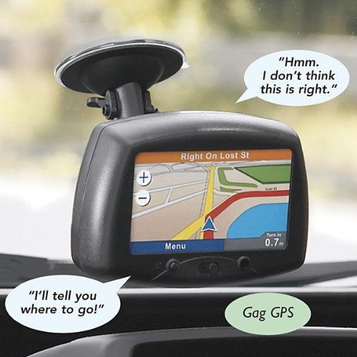 This GPS unit will definitely tell you where to gothough you may not want to hear it Motion activated gag unit speaks several different wisecracks and features a backlit screen for nighttime use Includes a suction cup with clamp for windshield mount and adjustable neck Uses 3 AA batteri Read More..