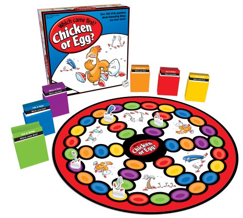 Which Came First The Chicken or the Egg A fascinating trivia game for the whole family Over 300 trivia questions about things you really care about 6 categories Try to collect category cards as you move around the game board Very detailed answers Read More..